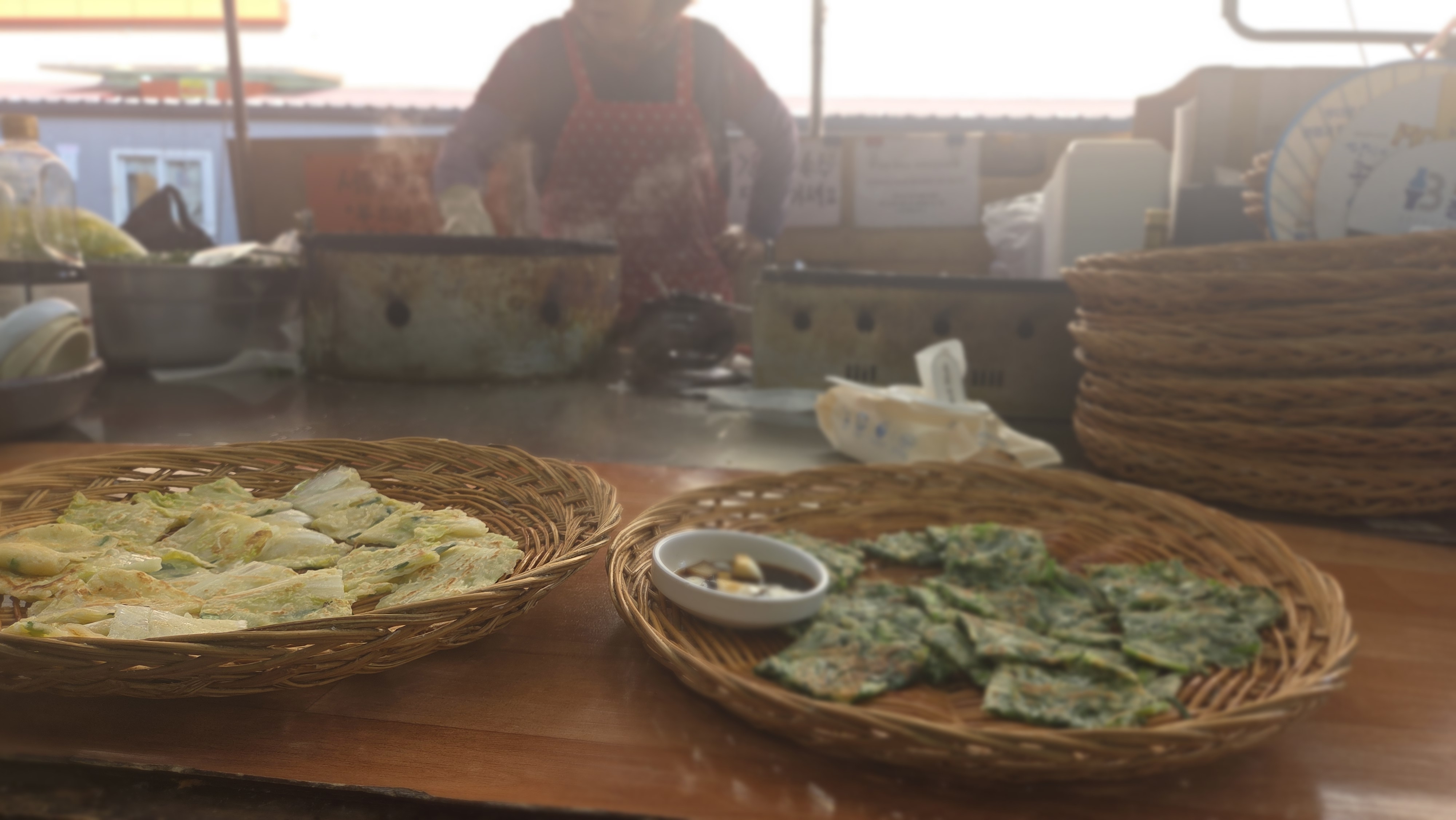 부추전과 배추전을 하나씩 주문했어요.